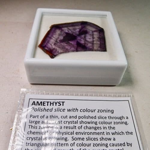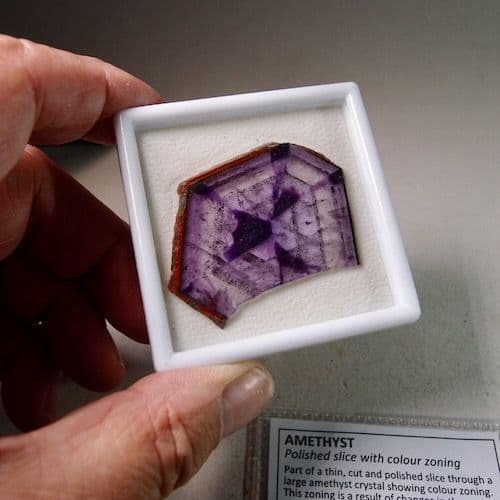 AMETHYST - THIN POLISHED SLICE SHOWING COLOUR ZONING