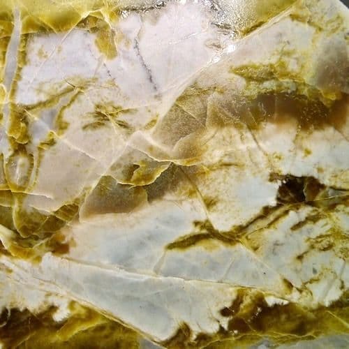 It was formed when impure limestone was metamorphosed during the Precambrian period over 600 million years ago to form a marble with bands of green serpentine minerals.