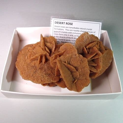 Desert roses are remarkable natural crystal formations. They are rosette-shaped groups of gypsum crystals with inclusions of sand.