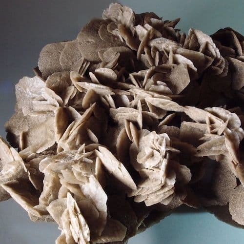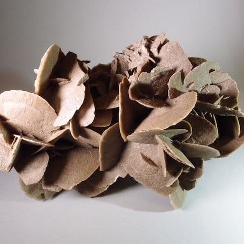 Desert roses are remarkable natural crystal formations. They are rosette-shaped groups of gypsum crystals with inclusions of sand. Desert roses normally form only in arid, sandy environments such as the deserts of North Africa.