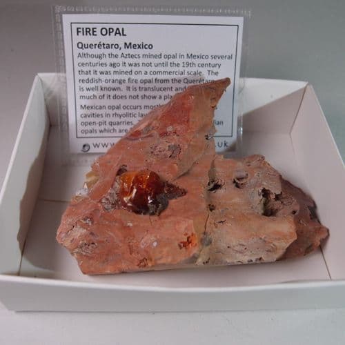 Although the Aztecs mined opal in Mexico several centuries ago it was not until the 19th century that it was mined on a commercial scale. The reddish-orange fire opal from the Querétaro area is well known. It is translucent and beautiful but much of it does not show a play of colour.