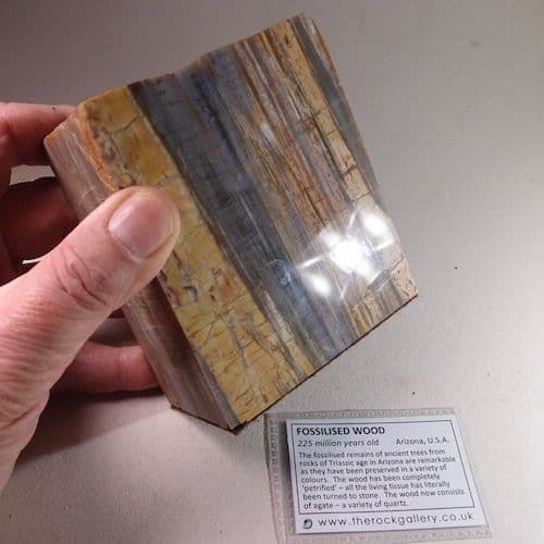 The fossilised remains of ancient trees from rocks of Triassic age in Arizona are remarkable as they have been preserved by agate in a variety of colours. Arizona, U.S.A.