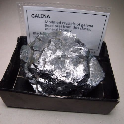 Galena is the main ore of lead. This specimen is from an old collection, probably collected when the mine was working in the 1980s.