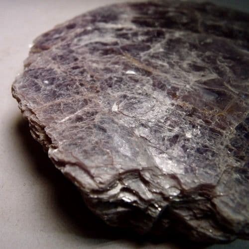 Lepidolite is a lithium-bearing variety of mica. Like all micas it splits into thin, flexible sheets.