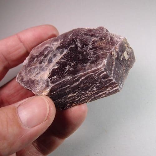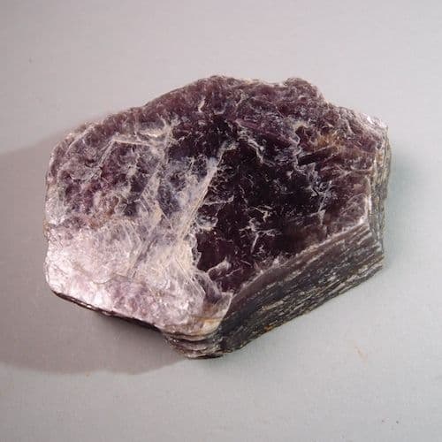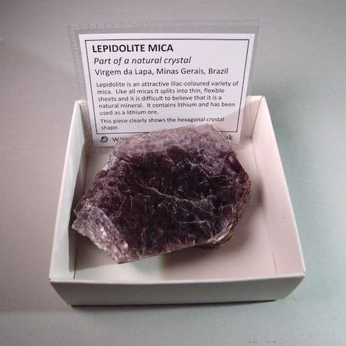Lepidolite is an attractive lilac-coloured variety of mica. Like all micas it splits into thin, flexible sheets and it is difficult to believe that it is a natural mineral. It contains lithium and has been used as a lithium ore.