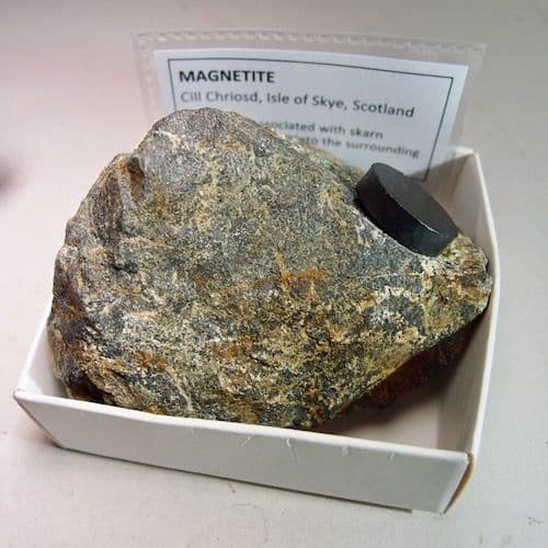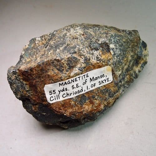 Specimen of magnetite associated with skarn deposits intruded into the surrounding Durness Limestone.
