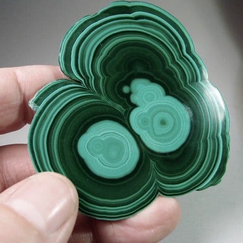 A beautiful banded polished slice of malachite