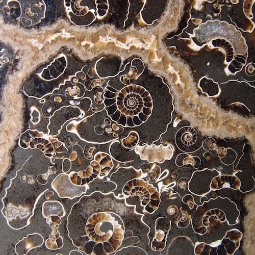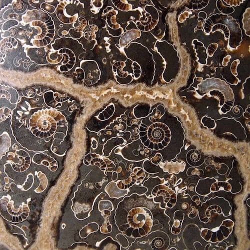 ‘Marston marble’ is one of Britain’s rarest rocks. It occurs in nodules which, when broken open, are seen to be crowded with small ammonites tightly packed together. It is very attractive when cut and polished.