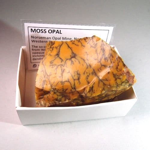 The so-called moss opal or dendritic opal from Western Australia is a translucent or opaque form of common opal containing inclusions of iron oxides forming beautiful dendritic (tree-like) patterns.