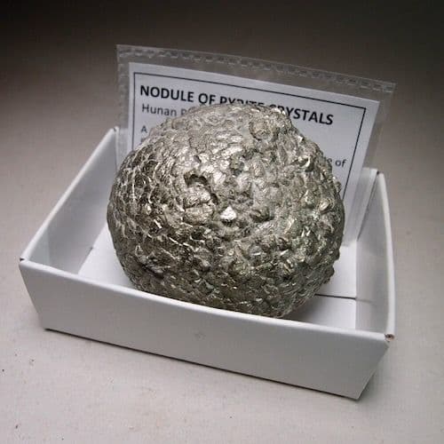 A spherical nodule consisting of an aggregate of lustrous pyrite crystals from China.