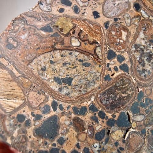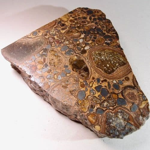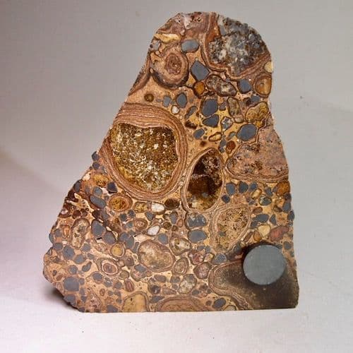 A highly unusual ironstone with what appears to be oncolites enclosing rock fragments. It is packed with magnetite crystals. The magnet is included.