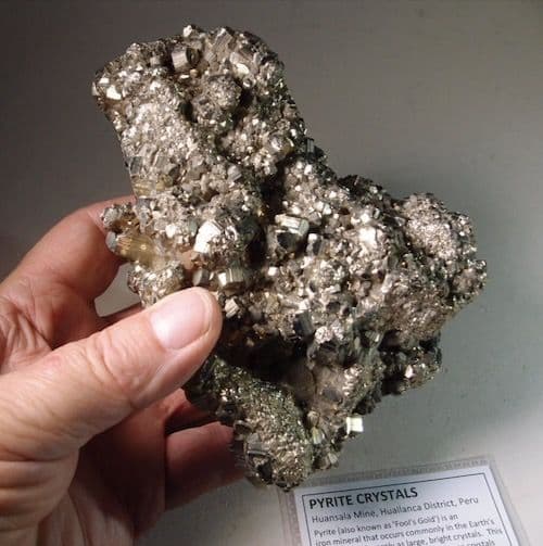 Pyrite (also known as 'Fool's Gold') is an iron mineral that occurs commonly in the Earth's crust, but only rarely as large, bright crystals.