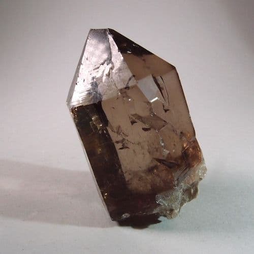 An attractive single crystal of transparent smoky quartz from a cleft in the Alpine rocks. Some damage to the crystal termination but this doesn't detract from what is a classic Alpine quartz crystal.