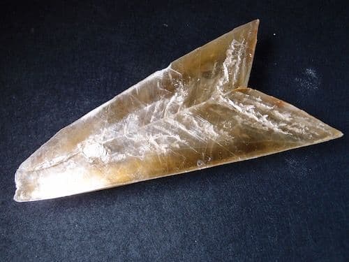 Selenite is the name given to the crystallised variety of gypsum (calcium sulphate). These naturally twinned crystals have been called ‘Swallow-tail’ crystals.