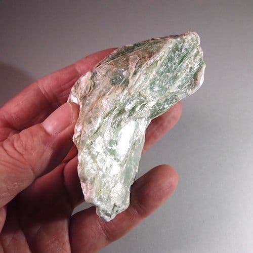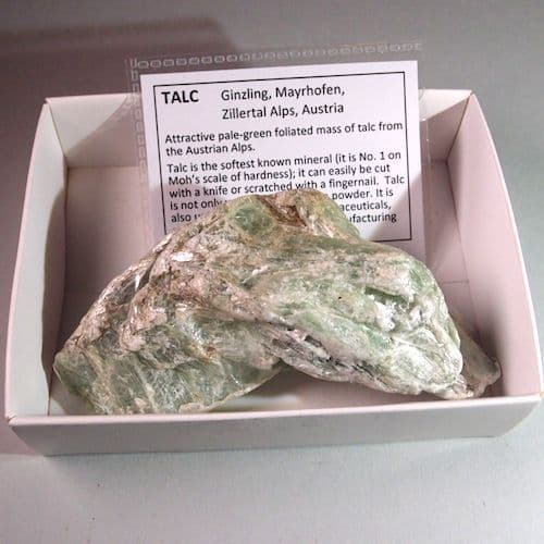 An attractive pale-green foliated mass of talc from the Austrian Alps. It is a translucent green colour when held up to a strong light (see photo).