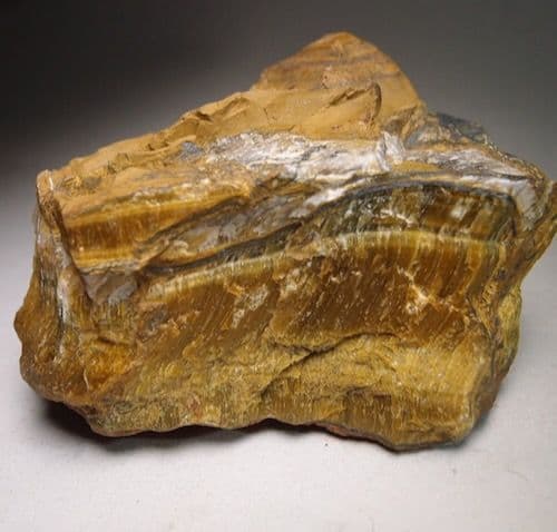Tiger’s eye started life as the fibrous mineral crocidolite but all the microscopic fibres of crocidolite have been completely encapsulated by quartz. The fibrous structure has, however, been retained, producing the optical effect.