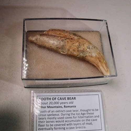 Tooth of an extinct cave bear, thought to be Ursus spelaeus.
