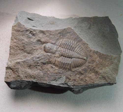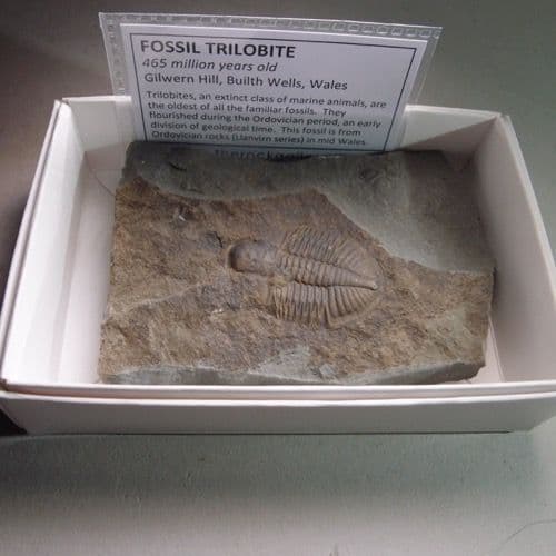 A typical example of a trilobite from Wales. It is from Ordovician rocks exposed in a quarry at Gilwern Hill, near Builth Wells in mid Wales.