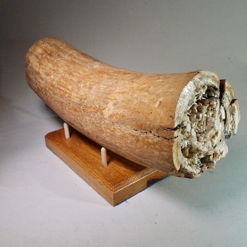 WOOLLY MAMMOTH TUSK (PART OF) WITH OAK STAND - about 40,000 years old - Oxfordshire